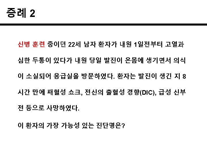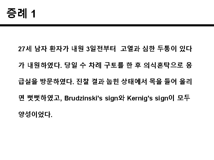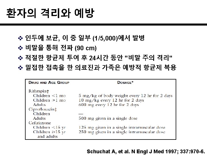 왜 신병에서 발생하나? v Age of high risk; < 4 & 15 ~ 24 years old v Diverse geographic areas & strains v Crowded living conditions v In US Army, vaccination since 1971 v Dormitory of US College in 1998 ~ 99 2. 2 / 100, 000 / yr vs. 1. 4 of same age group