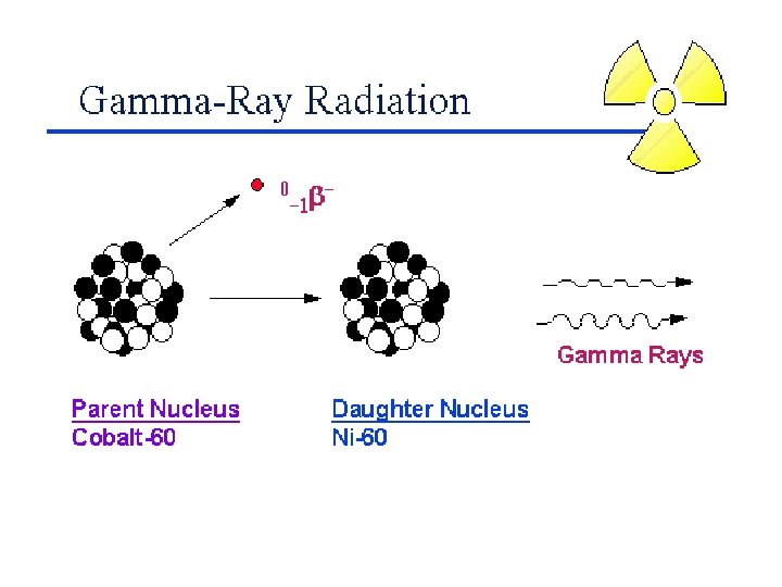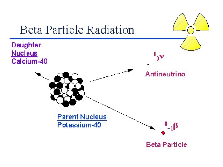 ��������� Type of Radiation Alpha particle Beta particle Gamma ray Symbol a b Mass )atomic mass units) 4 1/2000 0 Charge +2 -1 0 Speed slow fast very fast )speed of light( Ionising ability high medium 0 Penetrating power low medium high Stopped by: paper aluminium lead g )can look different, depends on the font(