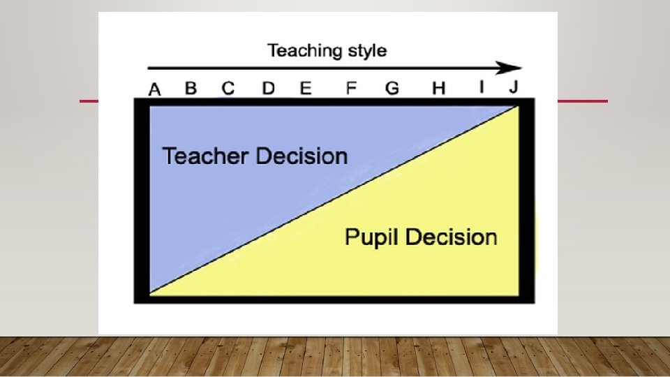 STYLES A - J • A = Command F = Guided Discovery • B = Individual Practice G = Convergent Discovery • C = Reciprocal • D = Self-check • E = Inclusion H = Divergent Discovery I = Learner designed IP J = Learner Initiated style