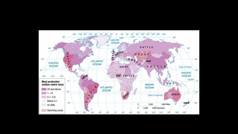 Livestock Ranching: Dry Regions • Ranching is the commercial grazing of livestock over an extensive area. • Well suited for semiarid or arid land • Today, ranching has become part of the meat-processing industry where new methods of breeding and sources of water and feed are embraced.