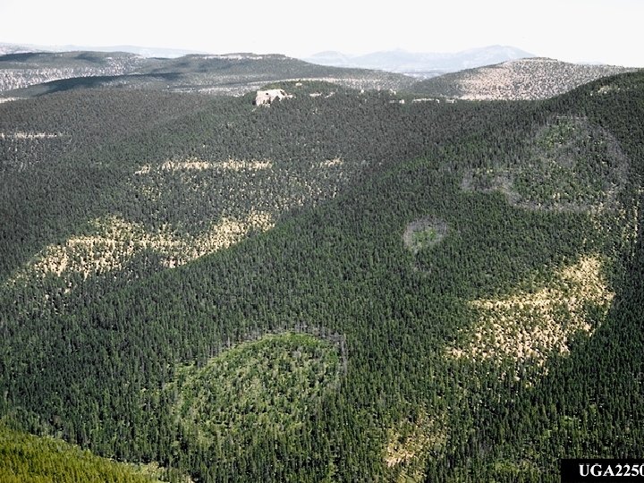 Spread • From original infection, disease moves to susceptible adjacent trees by mycelial growth through root to root contact • Results in a slowly enlarging disease center – Characterized by oldest mortality in the center, new mortality, and surrounding border of declining hosts