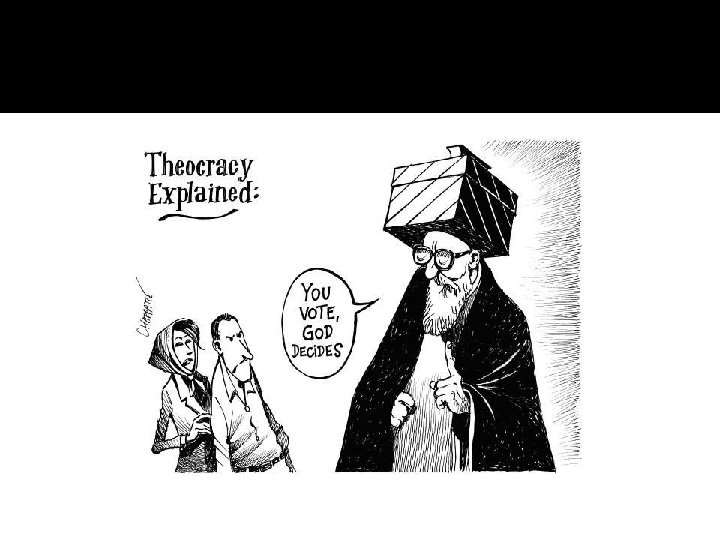 Types of unlimited governments �Theocracy: This government is ruled by religious leaders. Often times these leaders are very strict. Sometimes the religious leaders share power with a president, but the religious leader maintains the real power. Example: Iran