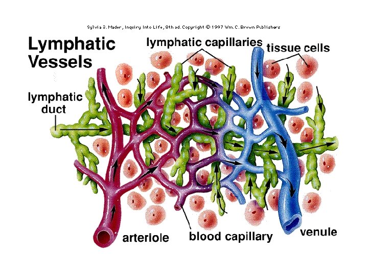 TISSUE FLUID TO LYMPH • The plasma and white blood cells that leak out of the blood capillaries return to the blood system by the lymphatic capillaries which lie within tissues and among the regular capillaries. • The tissue fluid slowly drains into these lymphatic capillaries and is now known as lymph. • Lymphatic capillaries join up to form lymph vessels then enters the blood system again by way of the veins.