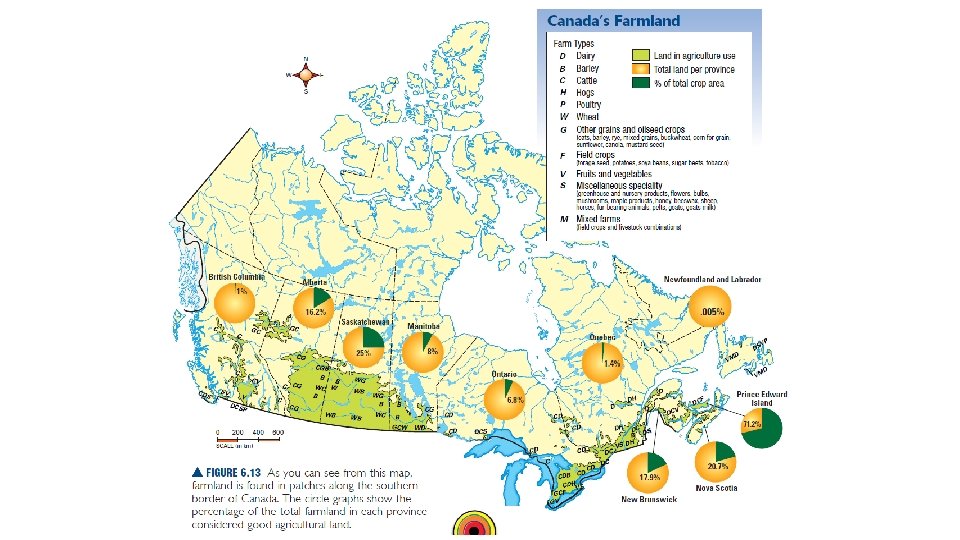 AGRICULTURE —AN ESSENTIAL PRIMARY INDUSTRY • Agriculture generates 1. 7% of Canada’s gross domestic product (GDP) and provides jobs, directly and indirectly, to approximately one in 86 Canadians. • Doesn’t seem like much - Agriculture supports many rural communities and provides Canadians with a safe, abundant food supply. • Agricultural land is often considered a renewable resource because, if it is properly cared for, crops may grow on it year after year. • only about seven per cent of the total land area of Canada is arable, or suitable for growing crops.