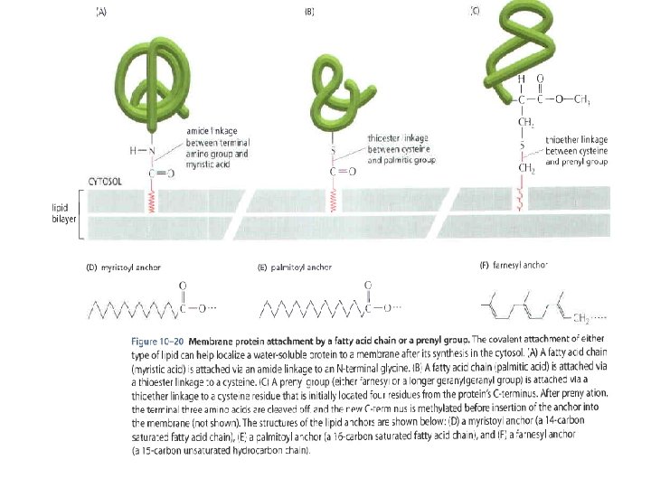 Types of membrane proteins 4. Peripheral membrane proteins • Proteins on either side of the membrane that associate with the polar ends of transmembrane proteins by noncovalent (ionic) interaction (Fig. 10 -17)