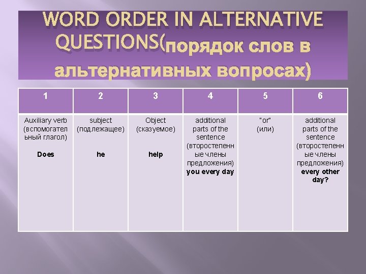 WORD ORDER IN SUBJECT QUESTIONS (порядок слов в вопросах к подлежащему) 1 2 Begin with “who, what, which…” Начинаются с «who, what, which…» Who Direct word order Прямой порядок слов loves Jane?