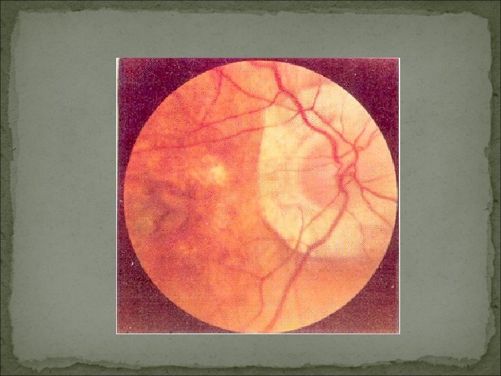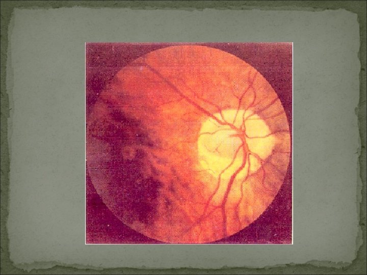Hemorrhage in the macula at myopia of high degree Macular pigmentation in place of older recurrent hemorrhages at myopia of high degree