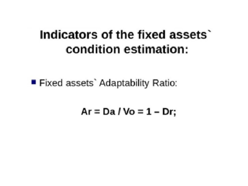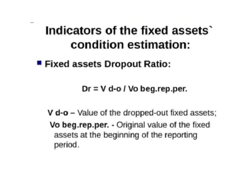 Fixed Assets (in Russia) Are used more than during one operational cycle; Are not included into the finished goods physically; The expenses for them become the part of goods’ price but are compensated for a long time period