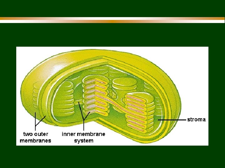 Chloroplast H The chloroplast is a special organelle necessary to carry out photosynthesis. H Chloroplasts contain certain pigments that give leaves the color they contain. H They belong to a group of organelles called “Plastids”. They all contain pigments and starch.