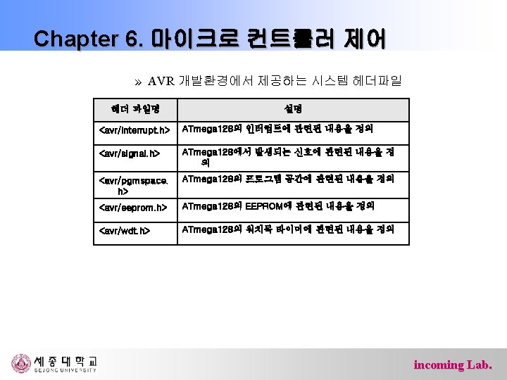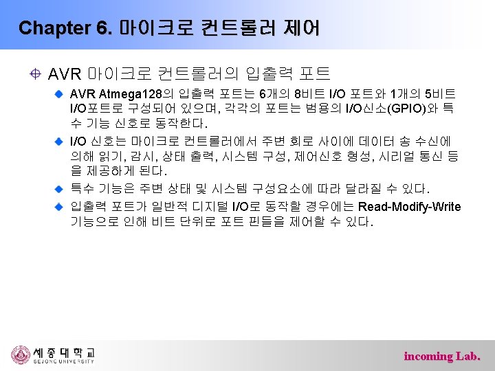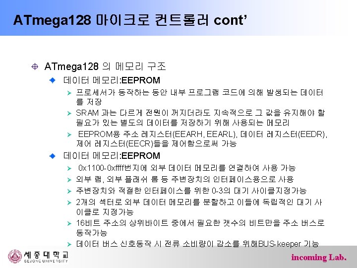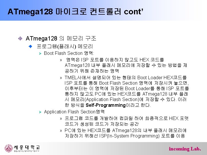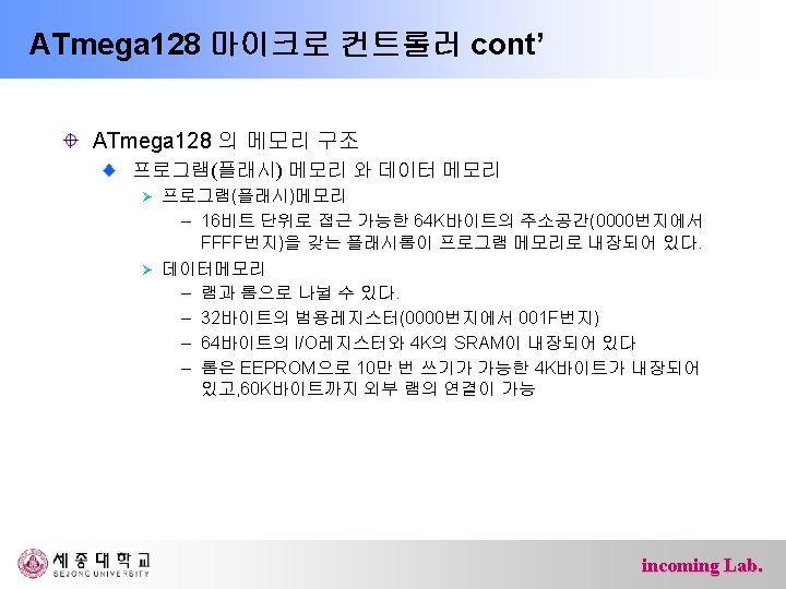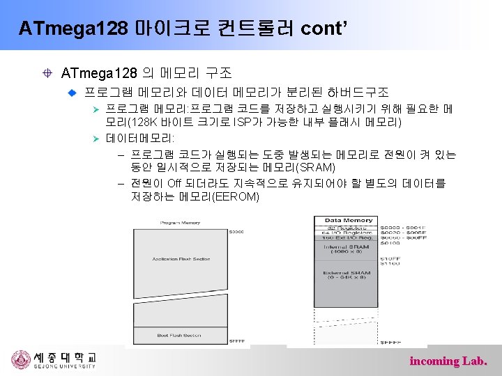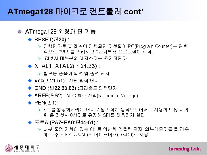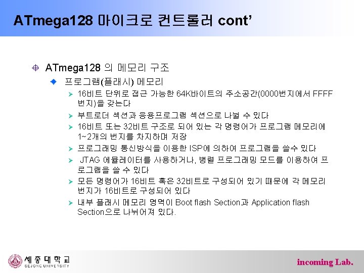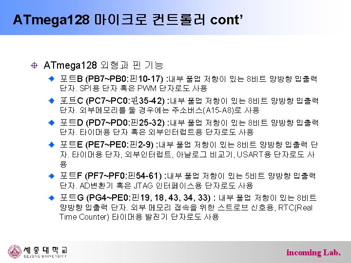 ATmega 128 마이크로 컨트롤러 ATmega 128 프로세서 내부구조 incoming Lab.