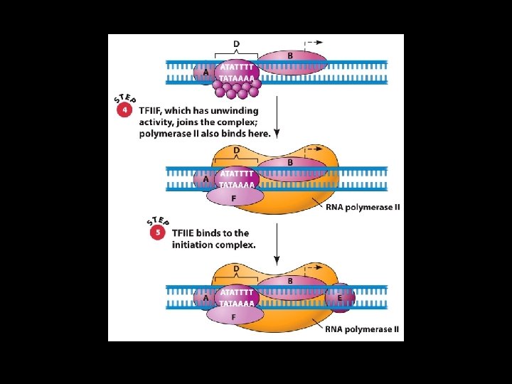 Initiation of RNA Chains 1. Binding of RNA polymerase holoenzyme to a promoter region in DNA 2. Localized unwinding of the two strands of DNA by RNA polymerase to provide a single -stranded template 3. Formation of phosphodiester bonds between the first few ribonucleotides in the nascent RNA chain