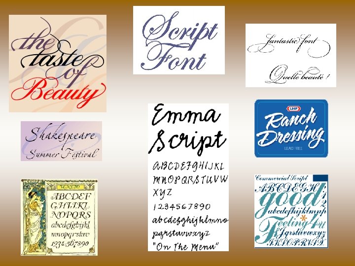 Sans Serif • These fonts are clearer at smaller sizes when viewed on screen. Verdana Comic Sans Helvetica Trebuchet