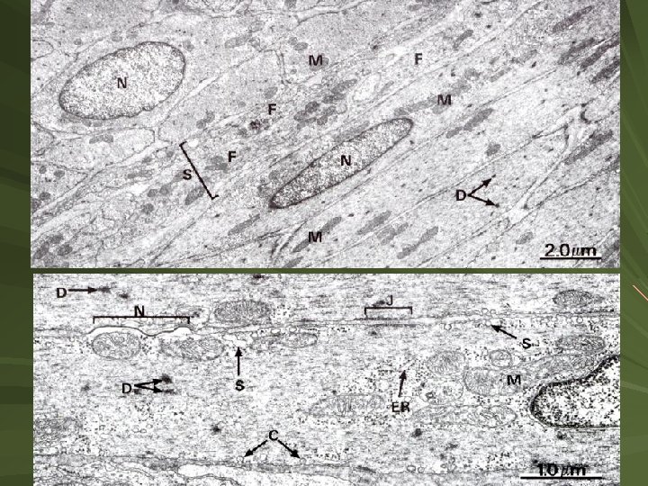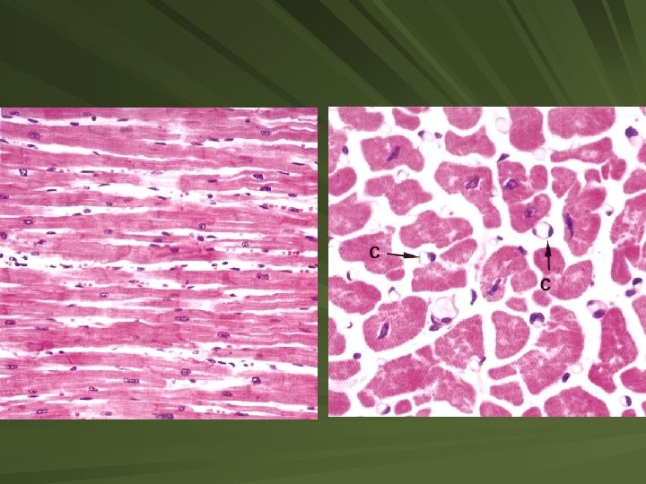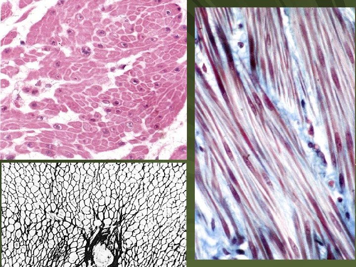 Hladký sval Pomalá, vůlí neovládaná kontrakce Morfologická jednotka svalová buňka - Vřetenovitého tvaru, eosinofilní cytoplazma bez žíhání - Jádra tyčinkovitá s kondenzovaným chromatinem Uspořádání svalu: - těsně k sobě připojené svalové buňky spojené dezmosomy a nexy tvoří snopce nebo souvislé vrstvy orgánů - mezi buňkami jemná retikulární vlákna, málo kapilár