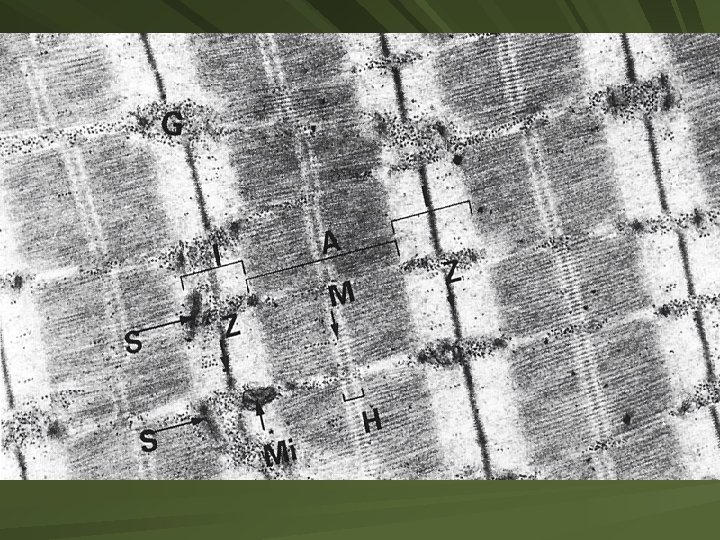 Kosterní sval Rychlá, vůlí ovládaná kontrakce Morfologická jednotka - Syncytium - mnohojaderné svalové vlákno, dlouhé až 30 cm - Jádra syncytia na periferii těsně pod plazmatickou membránou Uspořádání vláken ve svalu: Sval Svazek vláken - fasciculus Svalové vlákno Myofibrily Myofilamenta Sarkomera - uprostřed izotropního úseku se aktinová myoflamenta upínají do Z-linie – mezi Z liniemi sarkomera