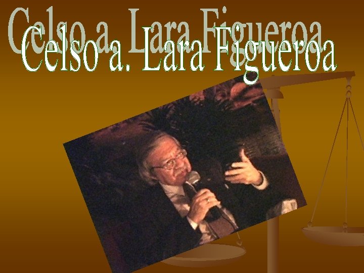 u Hablar de Celso Lara Figueroa es ya un reto incuestionable, pues es un ser mítico en la Literatura y en las ciencias del Hombre y la Cultura de Guatemala. Es como si con el sortilegio de su verba y largo andar entre leyendas y tradiciones populares se hubiese convertido, cual nahual fecundo, en un ser áureo: frondoso y eterno. Celso Lara, el escanciador de leyendas y mitos del tiempo y del agua, siempre vuelve a las raíces como el mito del eterno retorno.