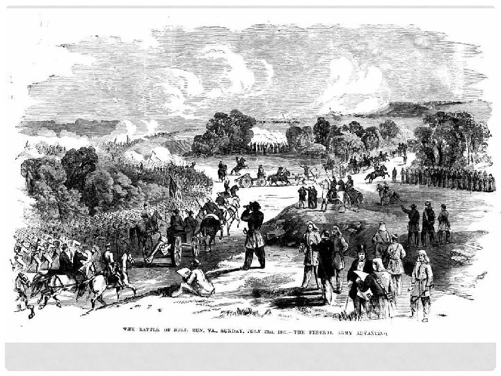 BATTLE OF BULL RUN • Manassas, Virginia • July 21, 1861 • Confederacy Wins • Led by “Stonewall” Jackson • Union loses, Lincoln calls for 100, 000 troops to enlist for 3 years • Names George Mc. Clellan General of the Union Army • Excellent at organizing and motivating • Afraid to take risks