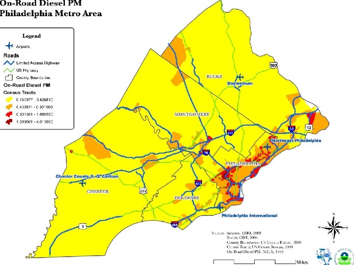 Air Quality Modeling l 1999 National Air Toxics Assessment l Non-road and On-road diesel PM l Study Area: – – – Philadelphia Delaware Montgomery Chester Bucks