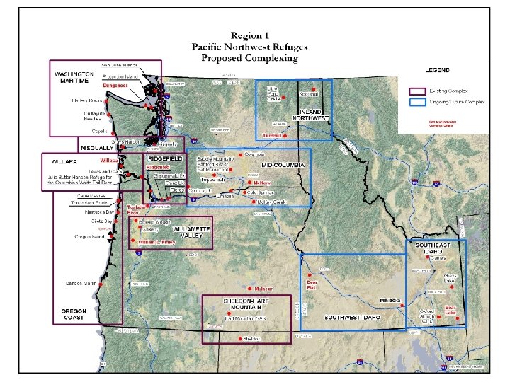 U. S. Fish & Wildlife Service Pacific Region National Wildlife Refuge Workforce Plan - Background • In November 2004, the Pacific Region’s National Wildlife Refuge System program conducted a budget analysis of its 64 national wildlife refuges located in Idaho, Oregon, Washington, Hawaii, and the Pacific Islands. The results illustrated that over 90% of field stations’ budgets were encumbered by salary and benefits costs and that by 2012, these costs would comprise over 95% of refuge budgets, leaving little to no resource management funding available to operate refuges. The Pacific Region initiated several actions to avoid a looming financial crisis. We have: 1) Implemented “base budgeting” to monitor and adjust operations as costs rise; 2) Improved operational efficiencies by unifying management for stations in close proximity and/or with similar ecological missions (known as Refuge Complexes); 3) Implemented “zone” management for certain functions (e. g. , fire management, maintenance); and 4) Established service centers for administrative functions. • This effort has resulted in 32 vacancies during fiscal years 2005 and 2006, improving the overall regional budget so that we currently average 20% of funds being available for resource management costs to operate refuges.