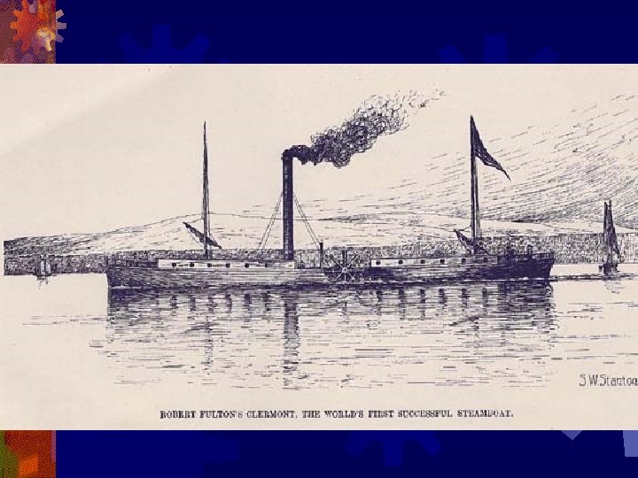 River Travel • Rivers were the main means of travel. You could only travel downriver • 1807 Robert Fulton invented the first steamboat, the Clermont. It traveled 150 miles from New York to Albany in 32 hours • Steamboats revolutionized river travel • Canals were built all over the U. S. to improve shipping. Canals connect two waterways • The Erie Canal was constructed in 1817. It connected the Great Lakes with the Mohawk and Hudson Rivers & the Atlantic Ocean • This canal increased settlement and made