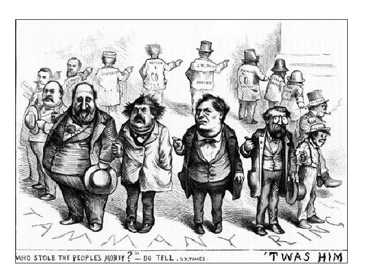 • William Tweed, the boss of the Tammany Hall Democratic party political machine • He was arrested, tried and imprisoned