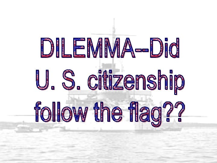 Puerto Rico: 1898 1900 - Foraker Act. § § § PR became an “unincorporated territory. ” Citizens of PR, not of the US. Import duties on PR goods 1901 -1903 the Insular Cases. § Constitutional rights were not automatically extended to territorial possessions. § Congress had the power to decide these rights. § Import duties laid down by the Foraker Act were legal!