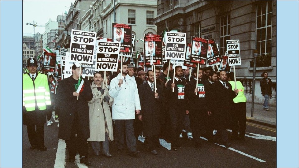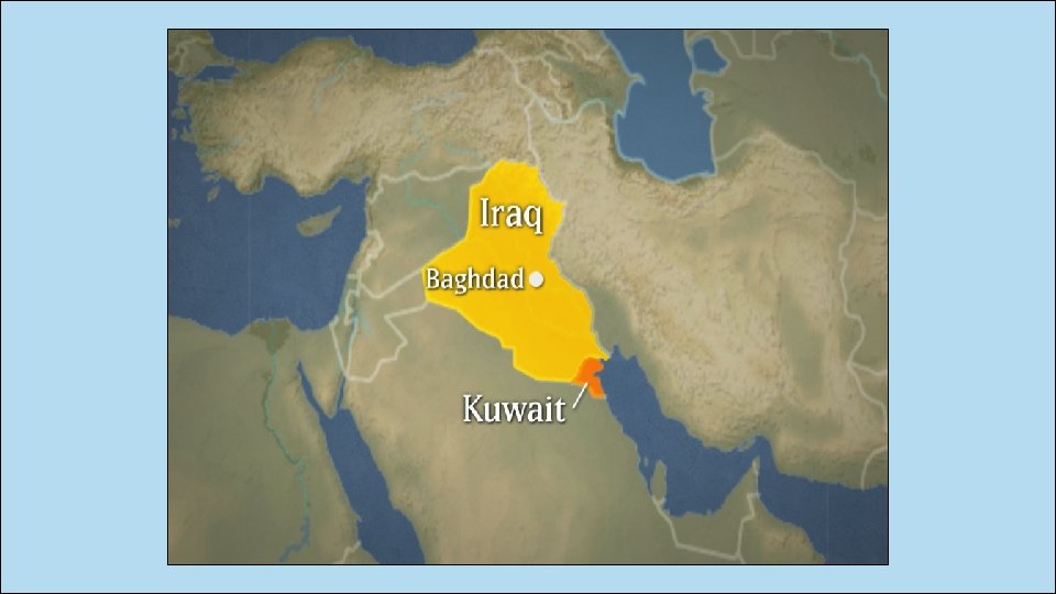 Kuwait • In 1920, the country of Kuwait was created. • As a result, Iraq lost its access to the Persian Gulf. • Saddam Hussein, Iraq’s dictator, wanted to get this access back, as well as acquiring Kuwait’s large oil reserves. • He felt that the oil fields belonged to Iraq. • Iraqi forces invaded Kuwait in August 1990. • In order to survive the attack, the small country of Kuwait knew it would need allies…