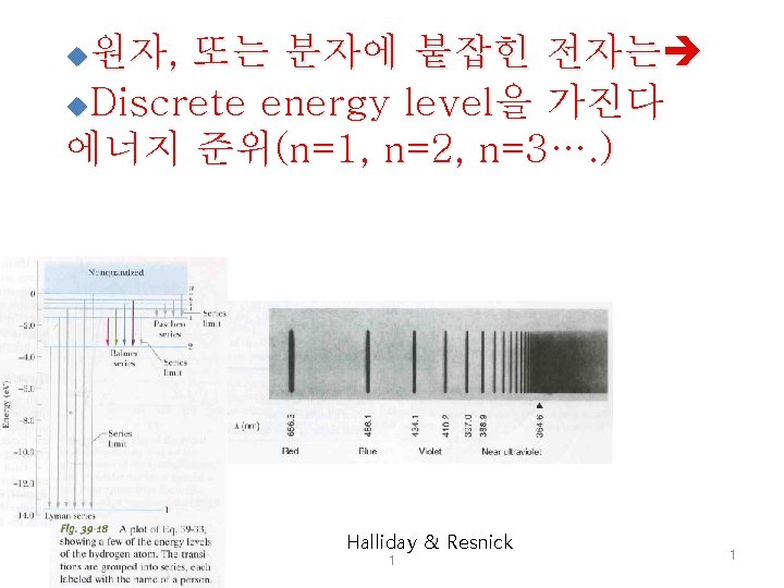 u u Why discrete energy level ? Why discrete stationary states ? Halliday & Resnick 2 2