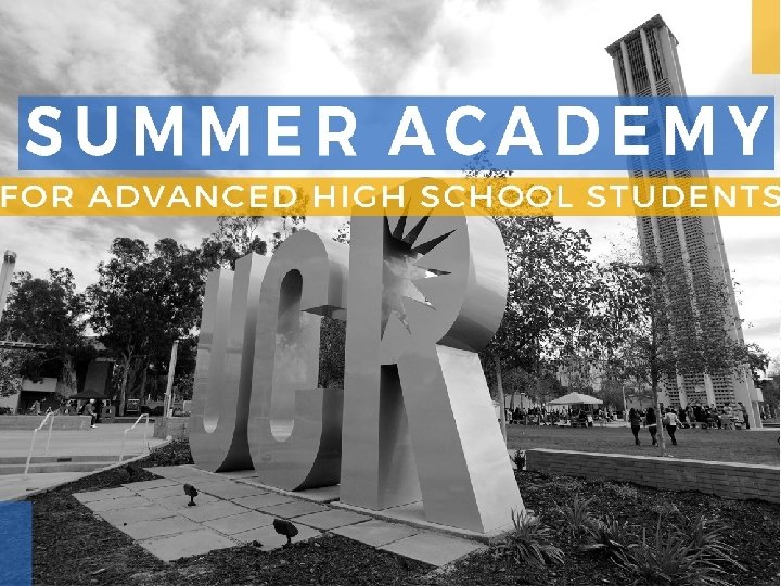 Summer Academy 145 students from 46 high schools Purpose Engage high achieving HS students College test run Engage with community Connect students to UCR opportunities Help students explore majors/career tracks