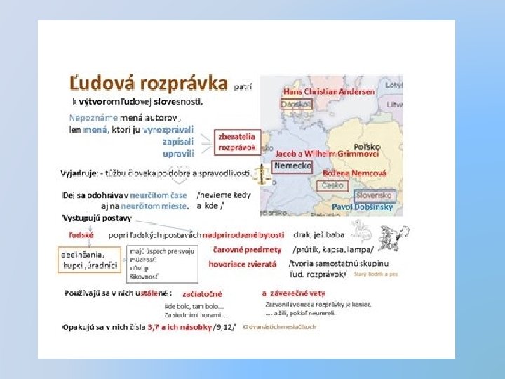 Domáca úloha: • Prečítaj si jednu ľudovú rozprávku. • Vyhľadaj v rozprávke charakteristické znaky ľudovej rozprávky. • • • Janko Hraško – 4 s. Kubove príhody -9 s. Princ Bajaja – 12 s. Husie počty – 15 s. Svenči gazda, zvieracej reči vedomý – 38 s.