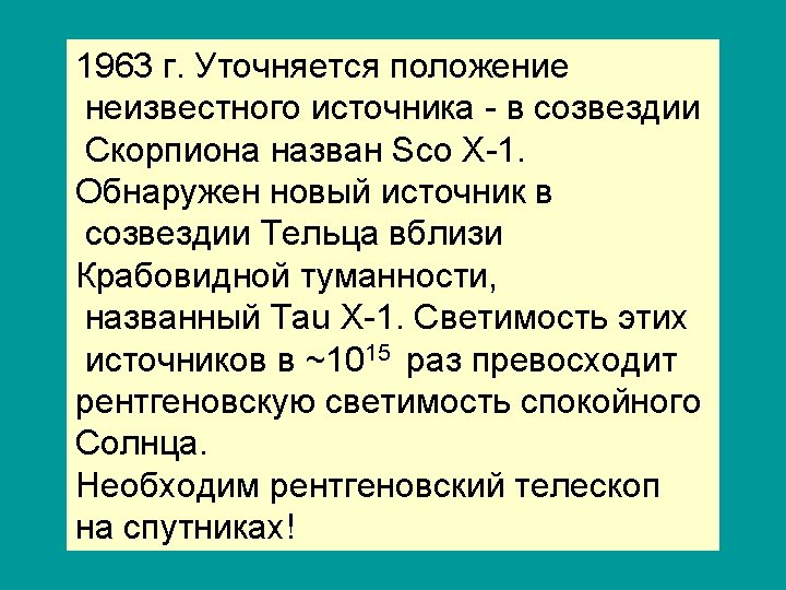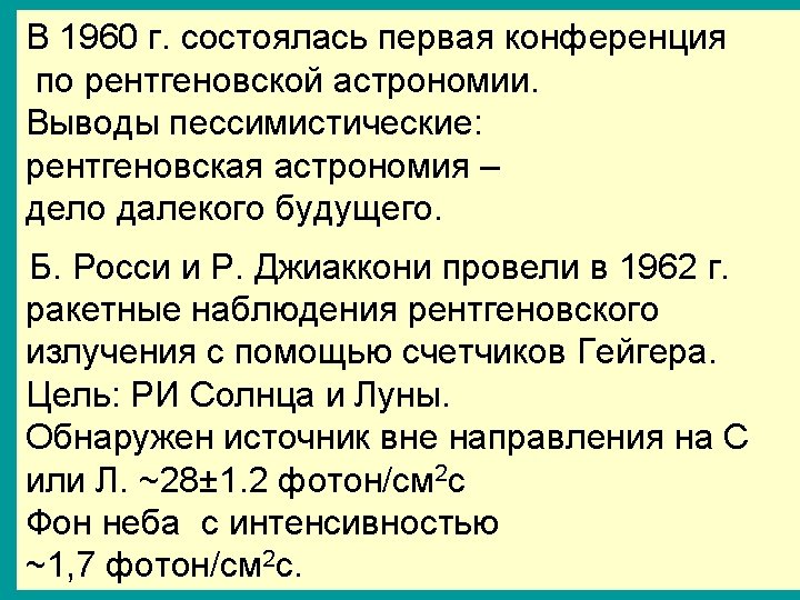 Запуск – 12. 1970 г. До лета 1973 г. Масса 175. 5 кг. Рентген. Счётчики 70 кг Орбита: 520 -560 км, наклон 3 о Тrot=12 min Two sets of proportional counters 2 -20 ke. V 0. 084 m 2 First comprehensive and uniform all sky survey with a sensitivity of 10 -3 the Crab intensity. The 339 X-ray sources detected are binaries, supernova remnants, Seyfert galaxies and cluster of galaxies Discovery of the diffuse X-ray emission from clusters of galaxies