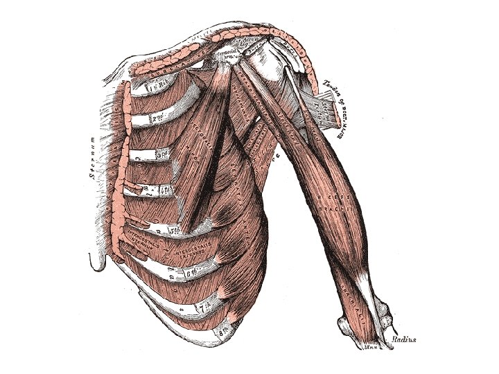 C. Mediales: • Grand dantelé (serratus anterior) D. Laterales: • Deltoïde (deltoideus) Innervation – r. collaterales du plexus brachial (exc. trapèze) Vascularisation – r. din a. axillaire