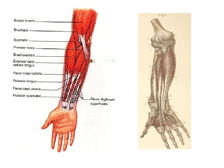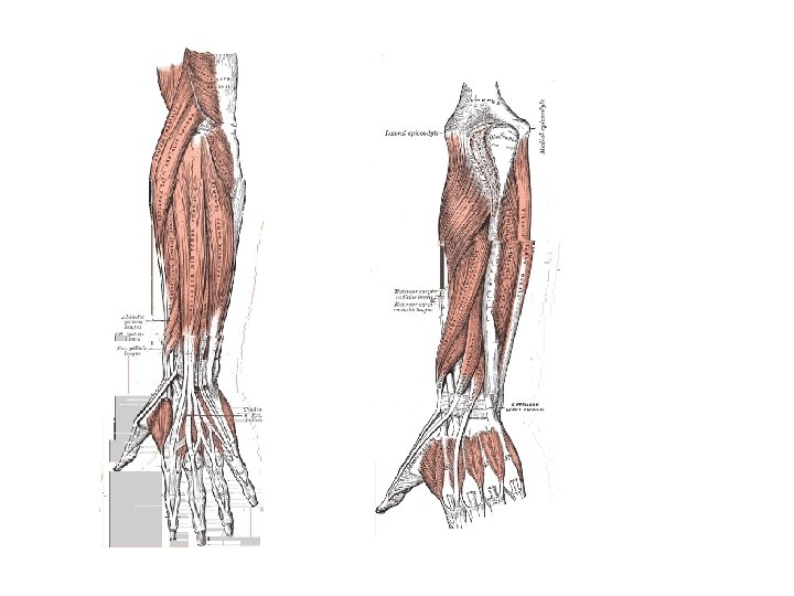 MUSCLES DE L’AVANT-BRAS Actionnent sur l’articulation du coude, du carpe at de la main FACE ANTÉRIEURE – fléchisseurs du main sur avantbras, des doigts sur la main et des pronateurs de la main - 4 planuri