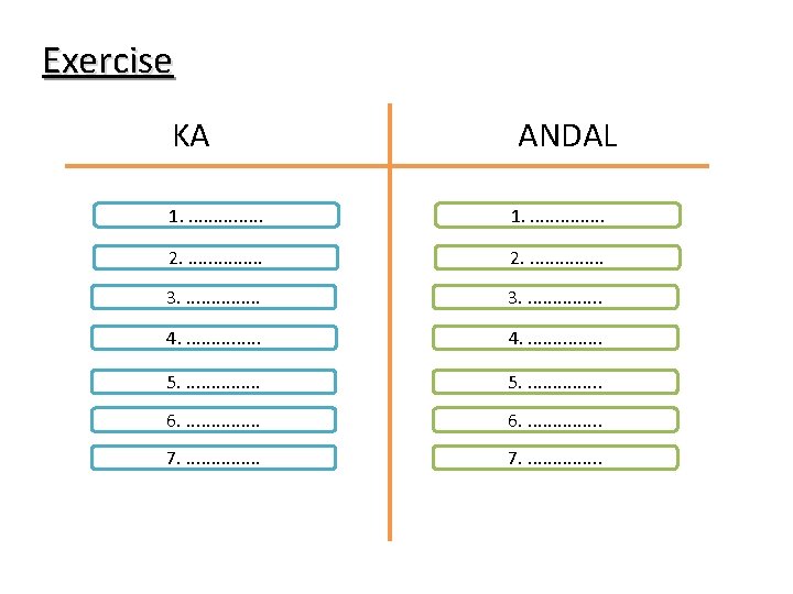 Exercise • Identifikasikan Dampak Penting yang ada di Studi Kasus. . • Tulis Dampak Penting di kartu Meta Plan. . . • Bandingkan Dampak Penting di KA dan Andal. . • Susun pada papan. . • Kerja dalam kelompok: 25 menit • Presentasi 2 kelompok @ 5 menit
