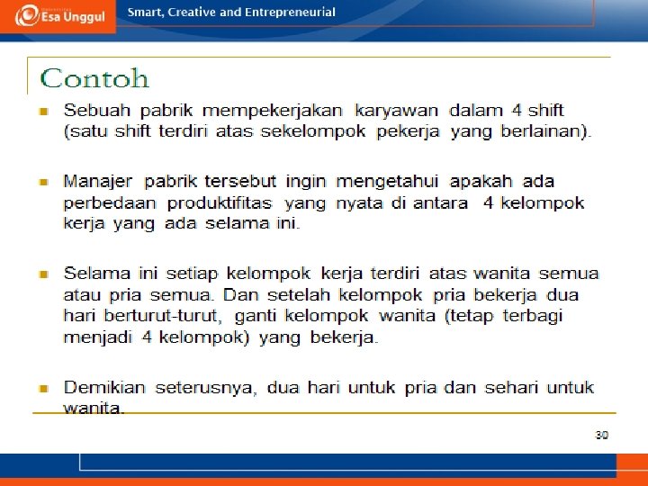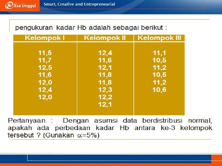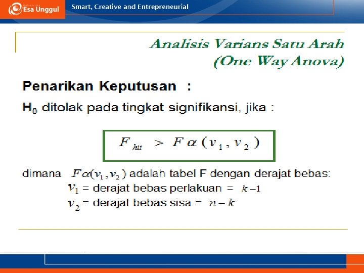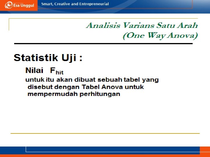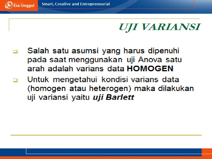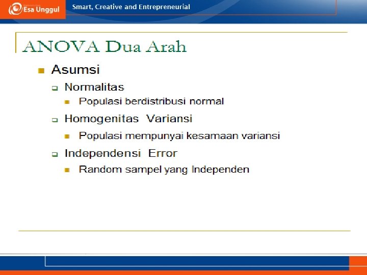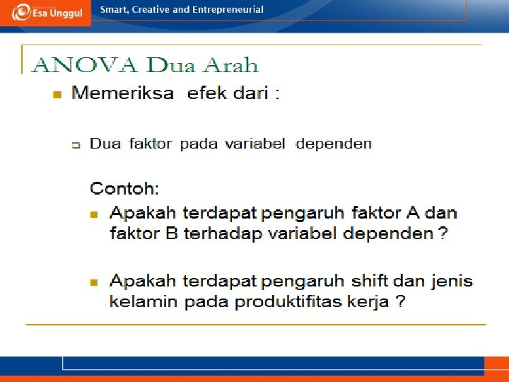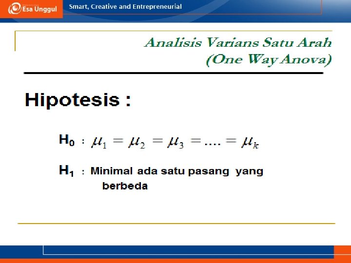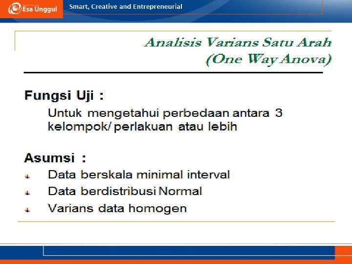 KEMAMPUAN AKHIR YANG DIHARAPKAN a. Memahami definisi uji ANOVA b. Menjelaskan syarat menggunakan uji ANOVA c. Aplikasi uji ANOVA dalam SPSS