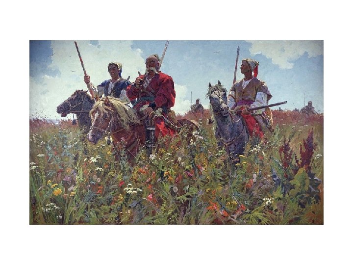 Ukraine: Historisch I Kosacken • Ein Schlüsselsymbol Ukrainischer Nationaler Identität • Grenzland = Freiheit (Von Imperien oder Leibeigenschaft) • (“Ur-)Demokratie/Anarchie? • Tatarische oder Turksprachen-Etymologie • Ableitung auch vom Ethnonym Qazaqlar, ein muslimisches Volk aus Asien/heutiges Kazakhstan • Urspruengliche Quellen der Kosacken (ab dem 14. /15. Jhr): Slawische (ukrainische und russische) entflohene Leibeigene aber auch Tataren oder andere Untertanen/Vasallen des Osmanischen Reiches