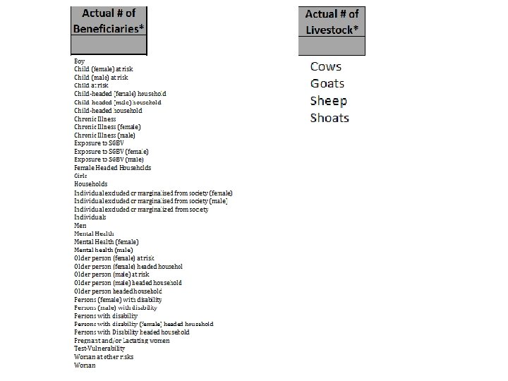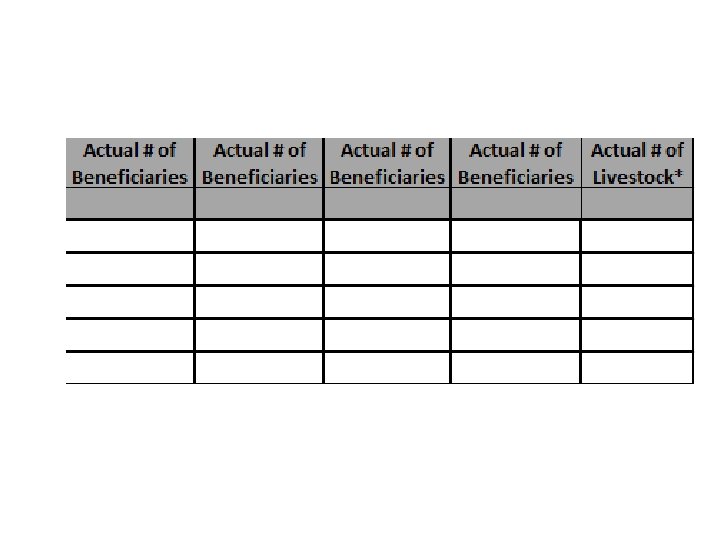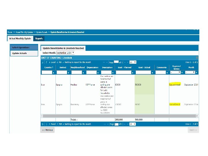 Actual Monthly Update > Update Beneficiaries & Livestock Reached