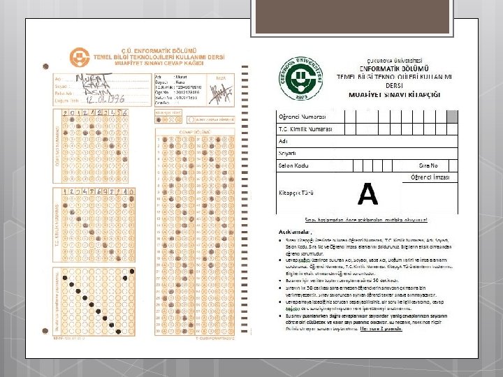 Organizasyon Bu amaçlara ulaşabilmek için; Sınav öncesi hazırlıkların, Soruların, Sınav yeri ve Gözetmen organizasyonunun, Sonuç ve değerlendirme Gibi tüm aşamaların doğru ve hatasız olmasına çalışılmıştır. Amaç doğrultusunda tüm hazırlıklar, yazılım ve organizasyonlar Ç. Ü. Enformatik Bölümü öğretim elemanları tarafından yapılmıştır.