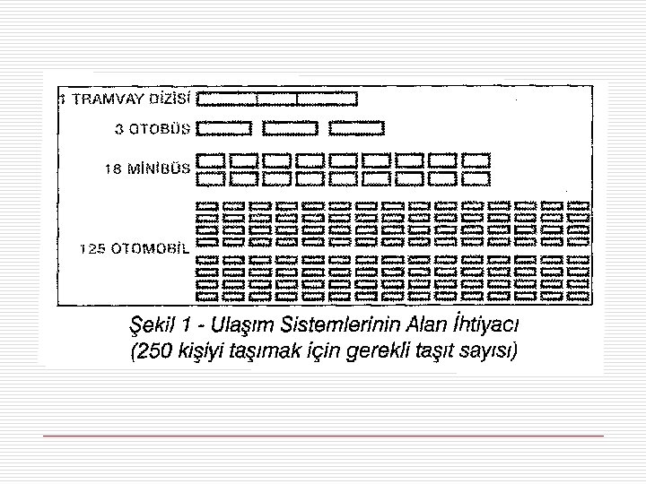 o Bugünden bir şey yapılmaz, yeni düzenlemeler getirilmezse. , araç trafiği; özellikle de özel araçlar ve kamyonlar, sadece kentleri tahrip etmekle kalmayacak, ‘sera etkisiyle” tüm çevrenin zarar görmesine de hatırı sayılır bir katkıda bulunacaktır. o Araçlar; kentleri gürültü, rahatsızlık, ruhsal ve fiziksel tehlike, çevre estetiği ve sosyal alanların yok olması, hava kirliliği gibi sorunlarla tehdit ederler.