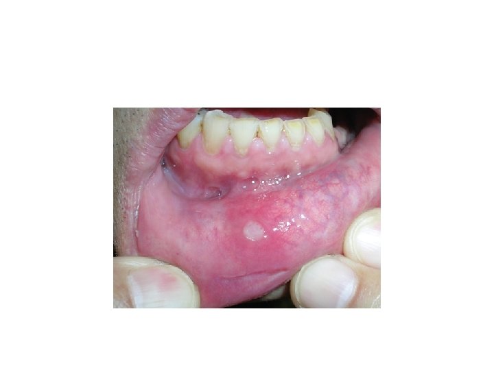 Clinical presentation • Minor Apthae (Mikulicz’s Disease) Ø Most common (80% cases) Ø Fewest recurrence Ø Shortest duration of ulcer episode among the three variants Ø Almost exclusively on non keratinized mucosa Rare on keratinized mucosa Ø 3 -10 mm in diameter Ø Heals in 7 -14 days 1 -5 ulcer /episode
