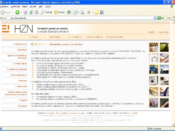 Gdje se mogu pronaći informacije o hrvatskim normama • HZN Glasilo – Oglasnik za normativne dokumente • Normoteka – tel: 610 60 51, 610 60 59 • • • Prodaja norma - tel: 610 60 52, fax: 610 93 24, 610 93 25 www. dznm. hr/hzn - katalog na internetu, oglasnik za normativne dokumente na internetu e-prodaja – uskoro na internetu