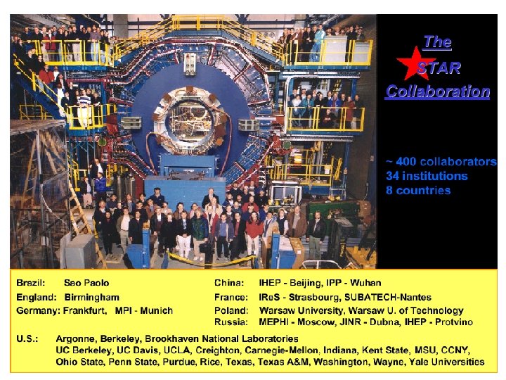 STAR Detector Coils Magnet Silicon Vertex Tracker E-M Calorimeter Time Projection Chamber Trigger Barrel Electronics Platforms Forward Time Projection Chamber
