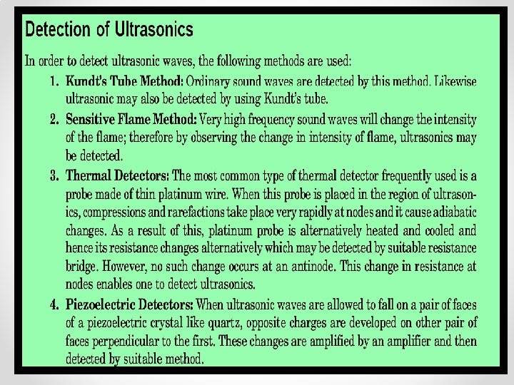 Production of Ultrasonic waves produced by two methods Piezoelectric Effect Magnetostriction