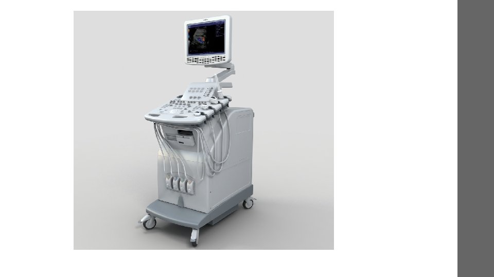 Equipment • Ultrasound scanners consist of a console containing a computer and electronics, a video display screen and a transducer that is used to do the scanning. • The transducer is a small hand-held device that resembles a microphone, attached to the scanner by a cord.
