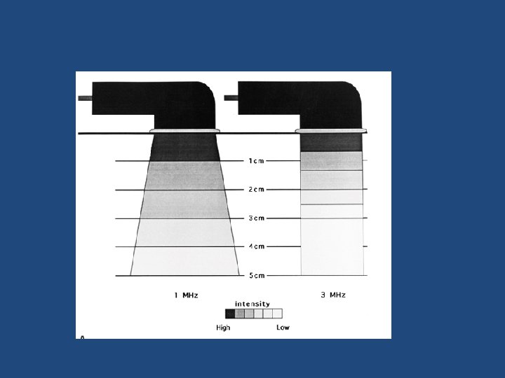 Frequency • Frequency: terjadi beberapa kali dlm 1 detik; dinyatakan dlm Hertz or pulses per second – Hertz: cycles per second – Megahertz: 1, 000 cycles per second • In the U. S. , menggunakan 1, 2 and 3 MHz • 1 = low frequency; 3 = high frequency • frequency = kedalaman penetrasi • frequency = gel. suara diserap pd jar. Superfisial (3 MHz)