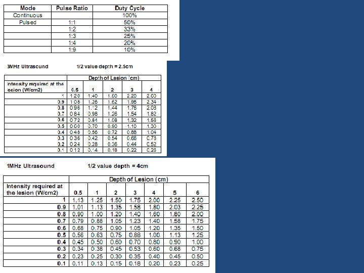 Intensity Output & Power • Power: dinyatakan dlm watts (W); – Jumlah energi yg dihasilkan oleh transducer • Intensity: kekuatan gel. suara @ lokasi tertentu dlm jaringan yg diobati • Spatial Average Intensity (SAI): jumlah energi suara melewati tranducer ERA; – Dinyatakan dlm watts per square centimeter (W/cm 2) (power/ERA) – Terbatas untuk 3. 0 W/cm 2 of maximum output
