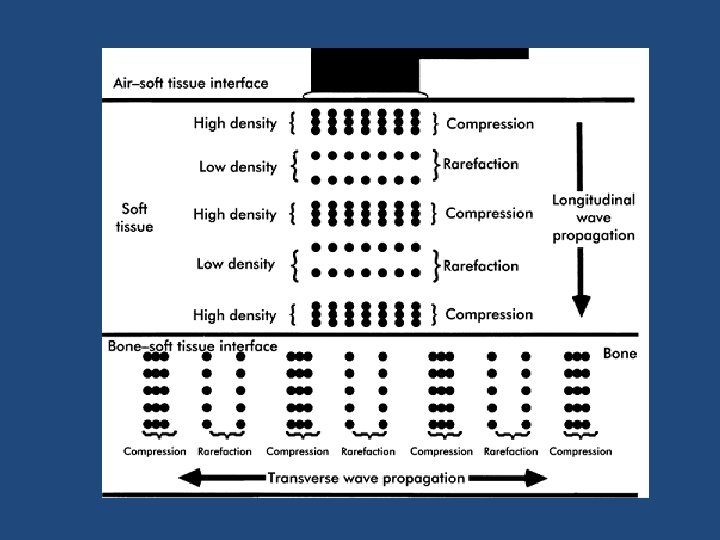 • Longitudinal waves – melalui zat padat & cairan – Soft tissue – lebih seperti cairan – US terutama bergerak sbg gel. longitudinal • Transverse waves – tidak dapat melalui cairan. Hanya pada tulang