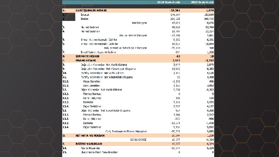 ÖDEMELER BİLANÇOSU HESAPLARI Cari İşlemler Hesabı 01 Sermaye 02 Hesabı Finans Hesabı 03 Net Hata ve Rezerv 04 Noksan Varlıkl ar 05