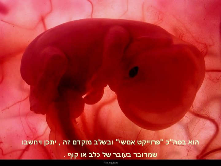 בתוך הרחם של האשה Um feto de poucas semanas encontra-se no interior do útero de sua mãe. Ria slides