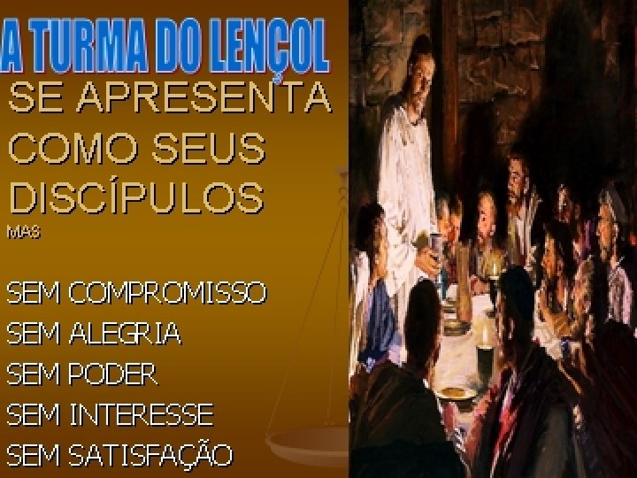 Mt 7: 21 -23 • A TURMA DO LENÇOL TEM VONTADE PRÓPRIA OU SEJA OPINIÃO PRÓPRIA • SEMPRE COMEÇA UMA IDÉIA DIZENDO: “EU ACHO QUE. . . ” • A ESPIRITUALIDADE DA TURMA DO LENÇOL É INTUITIVA • NÃO BATE COM A PALAVRA DE DEUS MAS LHES FAZ BEM • FAZ O CERTO NÃO PORQUE É CERTO MAS PORQUE OS OUTROS O FAZEM