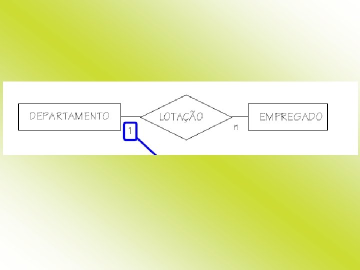 Cardinalidade Máxima • Entidade EMPREGADO tem cardinalidade máxima 1 no relacionamento LOTAÇÃO • Entidade DEPARTAMENTO tem cardinalidade máxima 120 no relacionamento LOTAÇÃO: